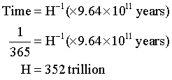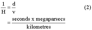With these units, inverse H must be multiplied by 9.64 x 1011 to give an age in years. Thus if H = 50,