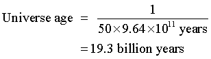 Such values are handled loosely by astronomers because of their suspicion that H has decreased with time; the universe must therefore be somewhat younger. It is common practice to quote an actual age value of about 2/3 of the calculated result, in this case 13 billion years.